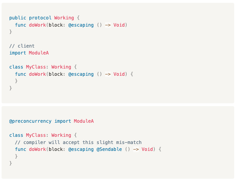 - "pre-concurrency" → 동시성 기능 도입 전에 작성된 코드라는 뜻